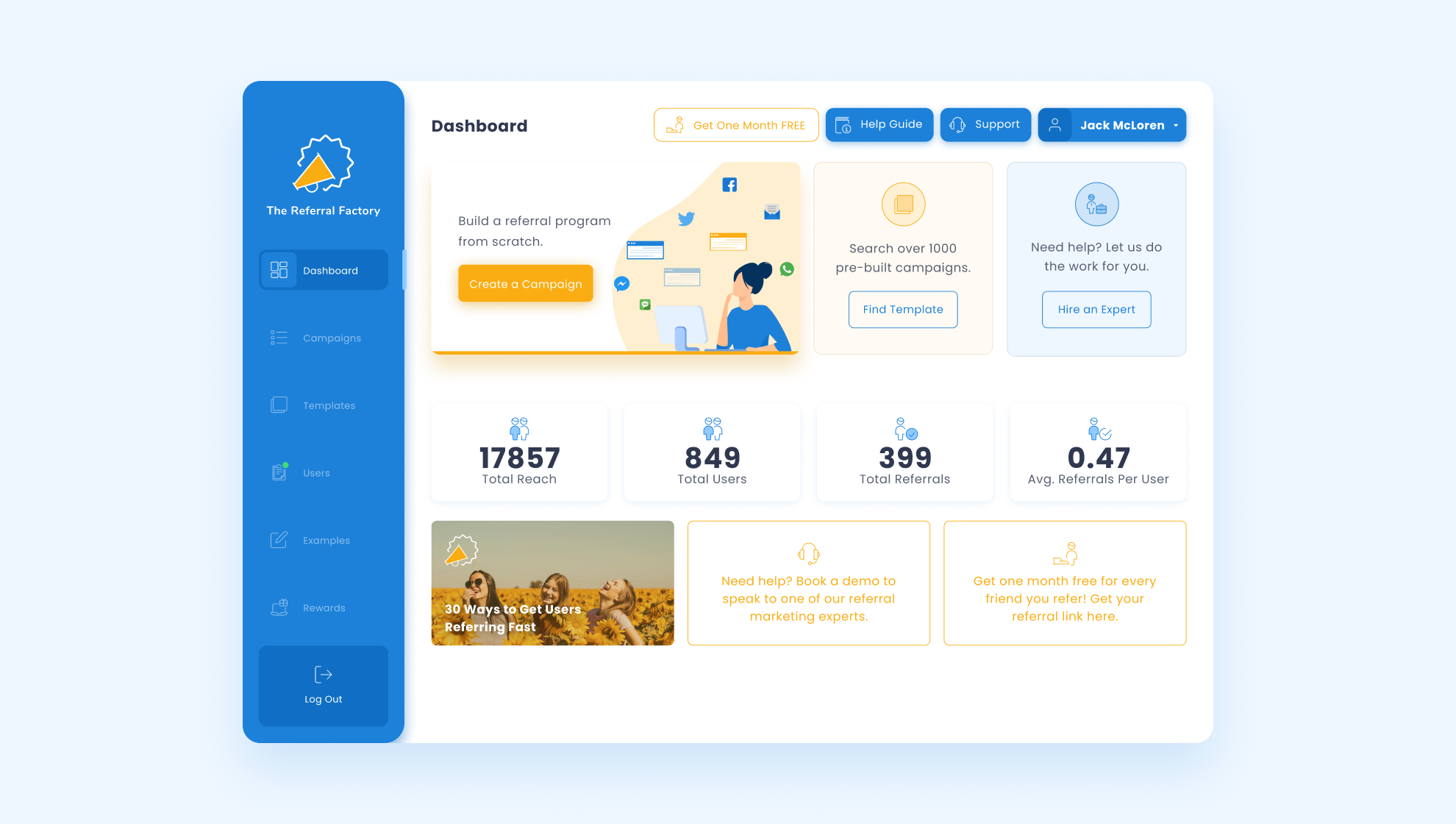 We took ownership of Referral Factory SaaS design from ideation to product launch, running and scaling. Services provided: design strategy, branding design, MVP design & prototype, software UX design, software UI design, campaign builder tools design, integrations design, API design, design for digital marketing and design for outdoor advertising.